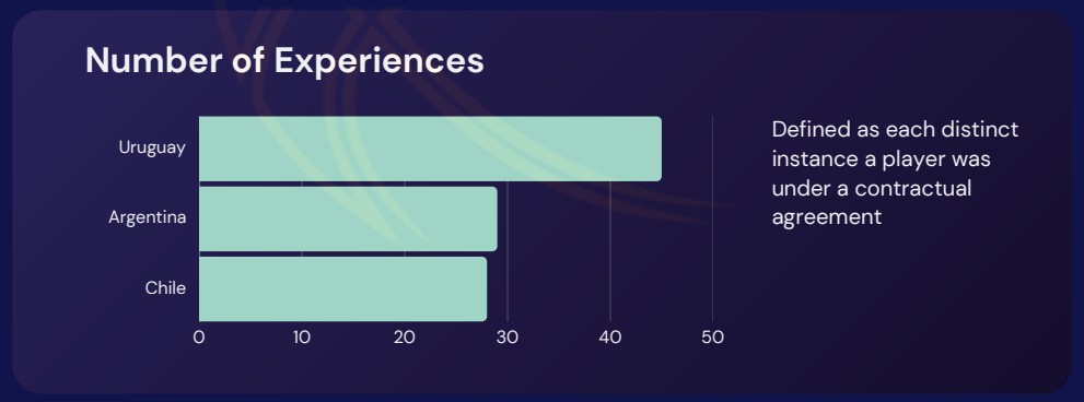 Uruguay and Argentina offer longer, more stable contracts. This isn’t about what’s written on paper, it’s about how long players actually stayed, got paid, and played. Contract stability within this region is much lower than in other parts. Import players may find other roles, but the findings suggest that expectations should remain below 5 months.